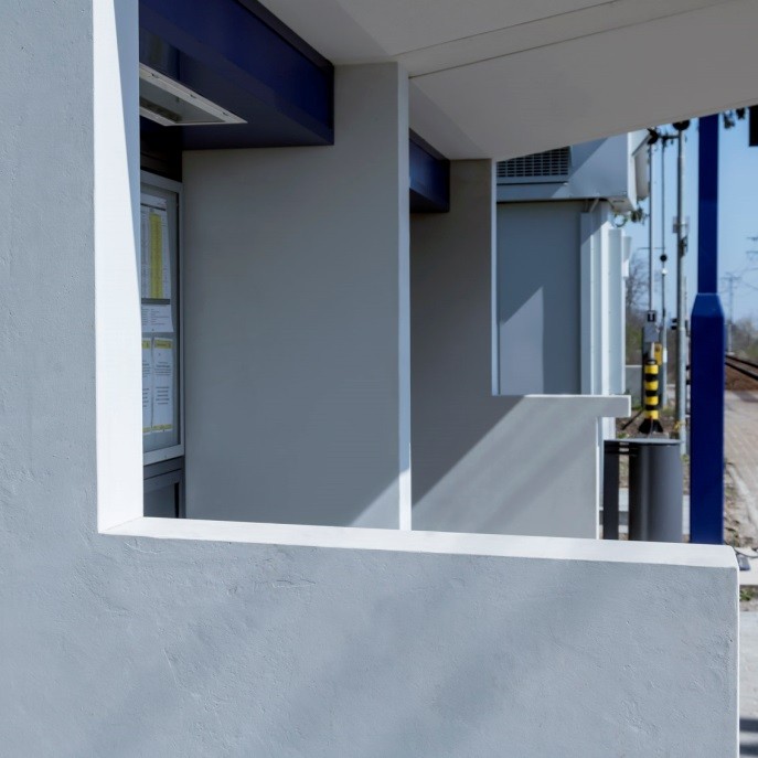Moderne, saubere Bahnhaltestellen aus Sichtbeton. Sie sind witterungsbeständig, widerstandsfähig gegen Beschädigungen, leicht zu reinigen und erfordern keine Konstruktion vor Ort, sondern nur eine schnelle Montage. In vielen Fällen ist es vorteilhafter als andere Materialien, da es eine langlebige, widerstandsfähige Oberfläche hat, schwer zu beschädigen ist und keine Wartungsarbeiten wie Lackieren oder ähnliches erfordert.