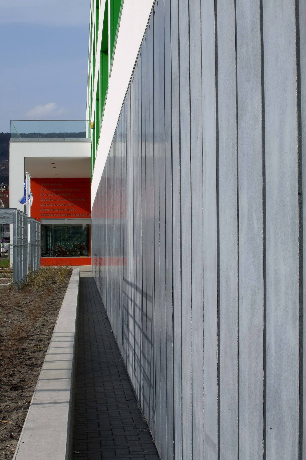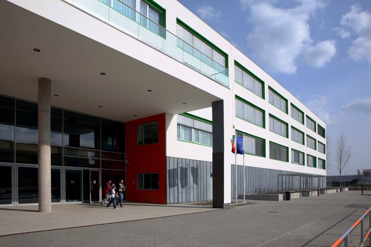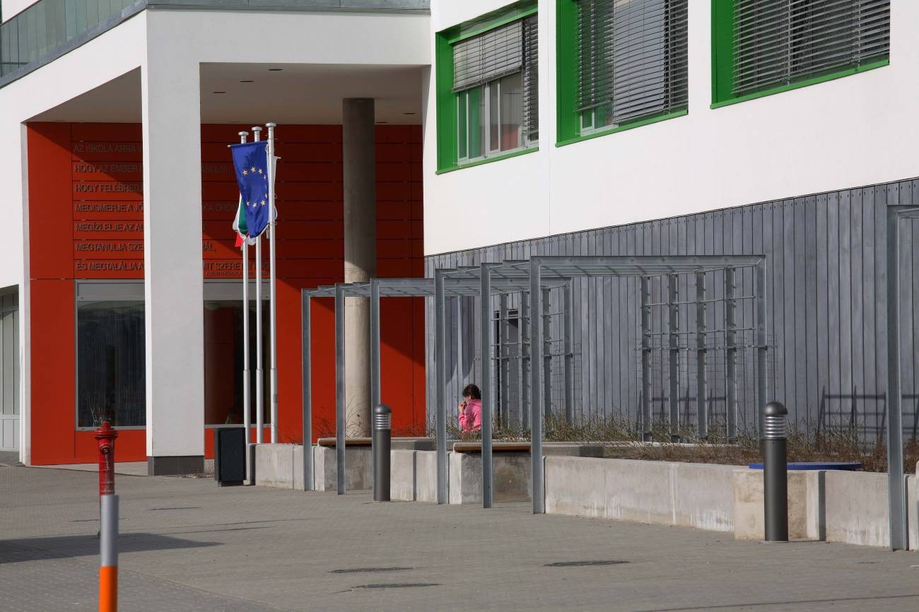 Schöne und moderne Grundschule in Budaörs. Wir können sicher sein, dass die Betonfassade dieser Schule niemals durch die Sonne oder andere Wetterfaktoren beschädigt wird.