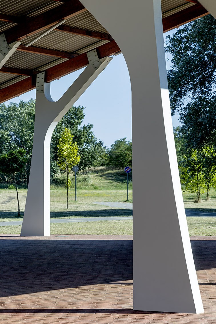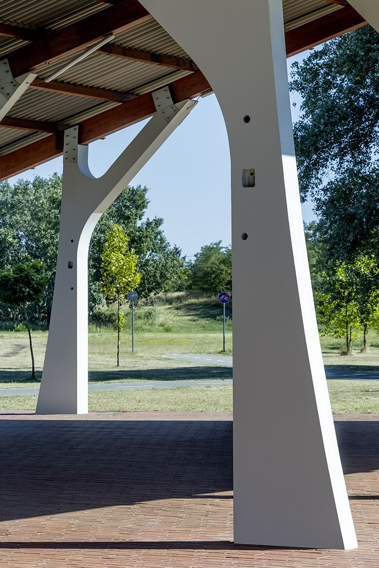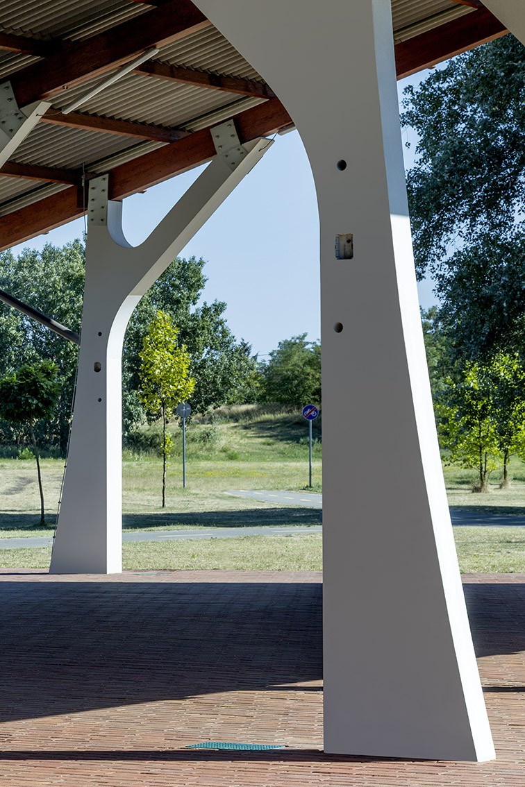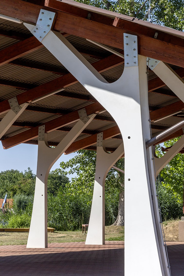 Spektakuläre Stützsäulen aus Beton im Zuschauerraum der Freilichtbühne in Békésszentandra.