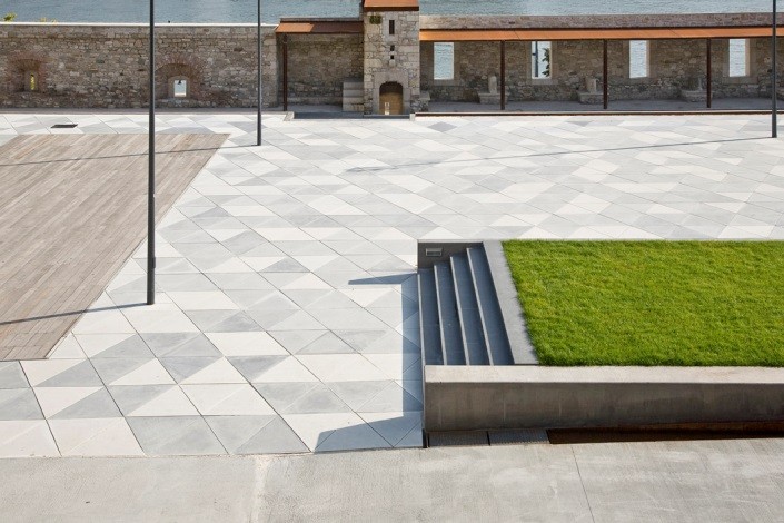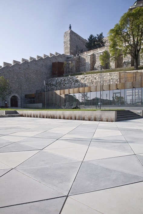 In front of the Budapest Castle Garden Bazaar is this bicycle path made of special concrete slabs. The surface of the concrete elements is patterned, which on the one hand has a decorative purpose and on the other hand it is much safer to ride a bike in rainy weather on which there is some pattern that helps adhesion, even on the concrete pavers shown in the picture.