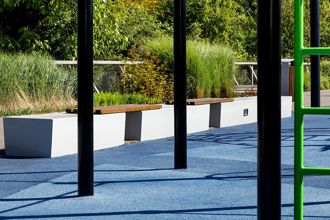 Another example of the fact that the application of fine concrete is almost unlimited. This time, we implemented playground and leisure park elements, in a really extravagant blue color.