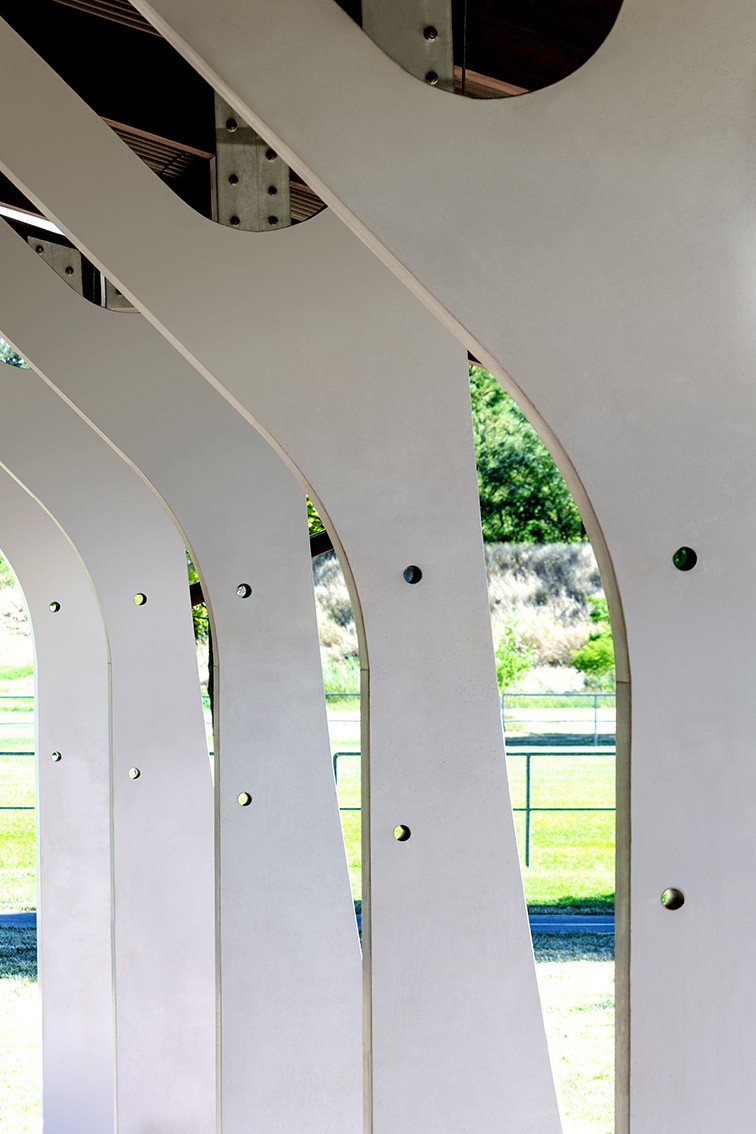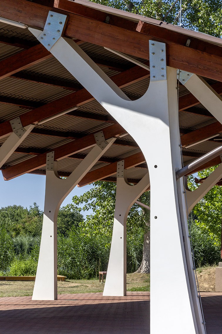 Spectacular concrete support columns in the auditorium of the outdoor stage in Békésszentandra.