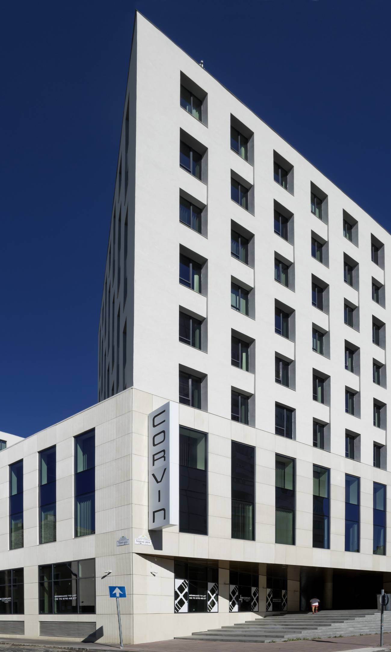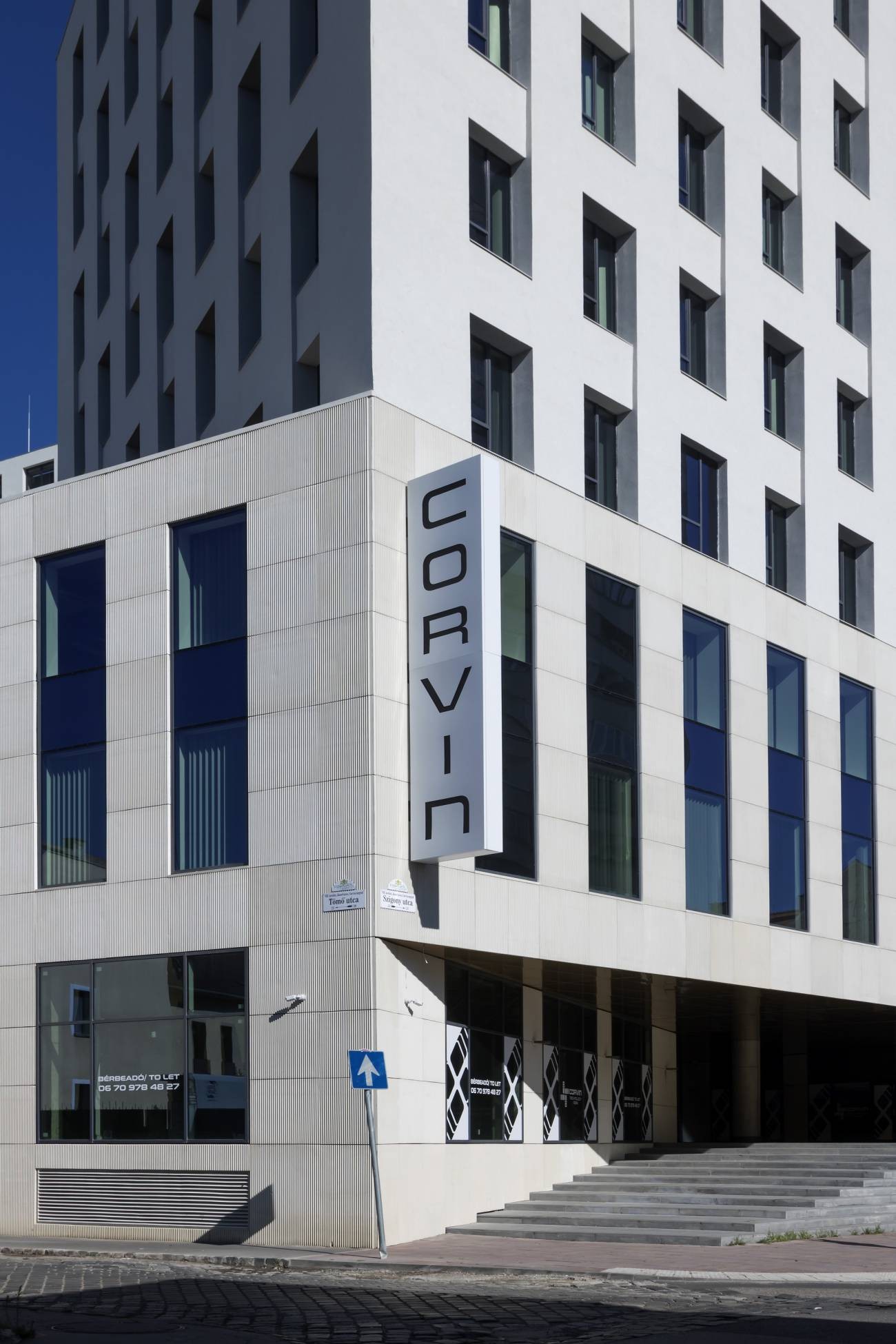 A Corvin negyed béli Corvin 5 irodaház homlokzati látszóbeton falpaneljei Budapesten. Különleges, bordázott mintájú kéregpaneleink egészen különleges látványt nyújtanak.