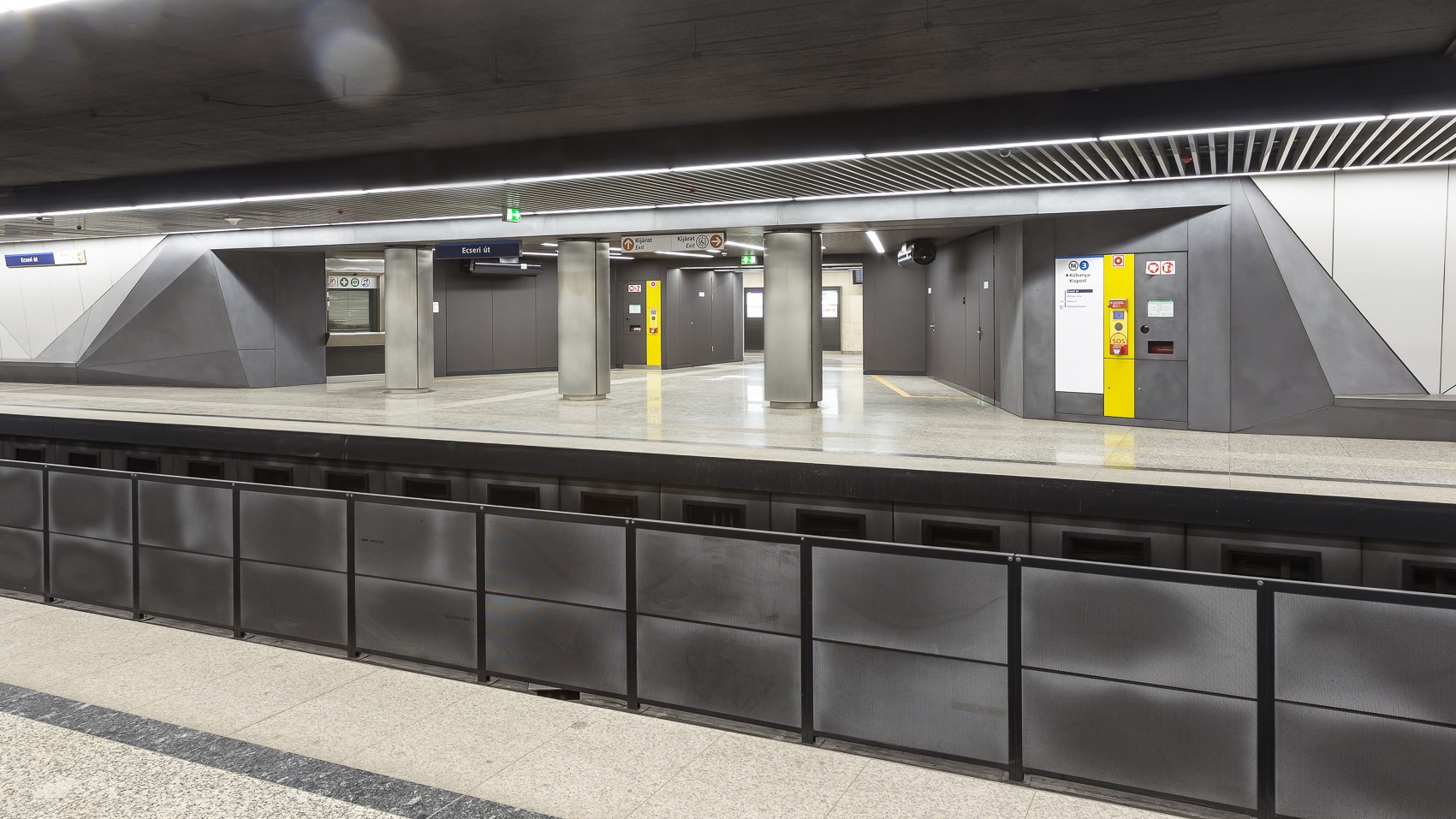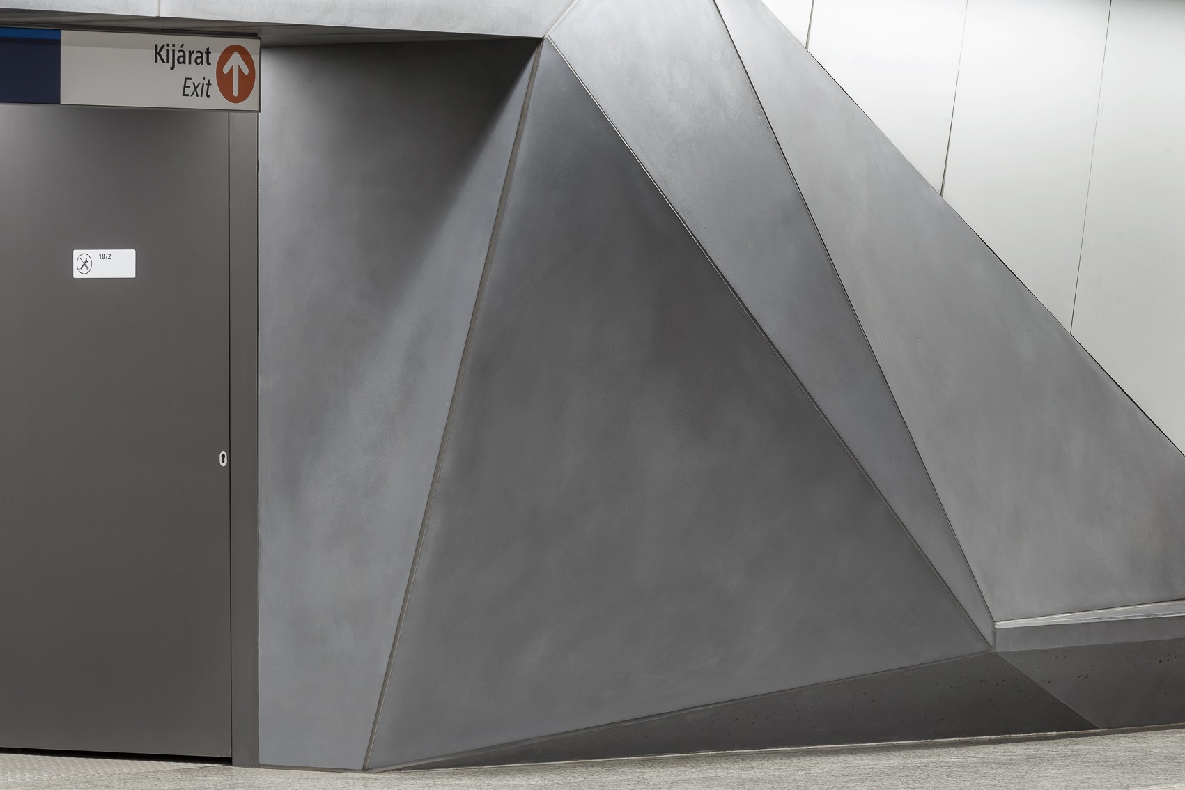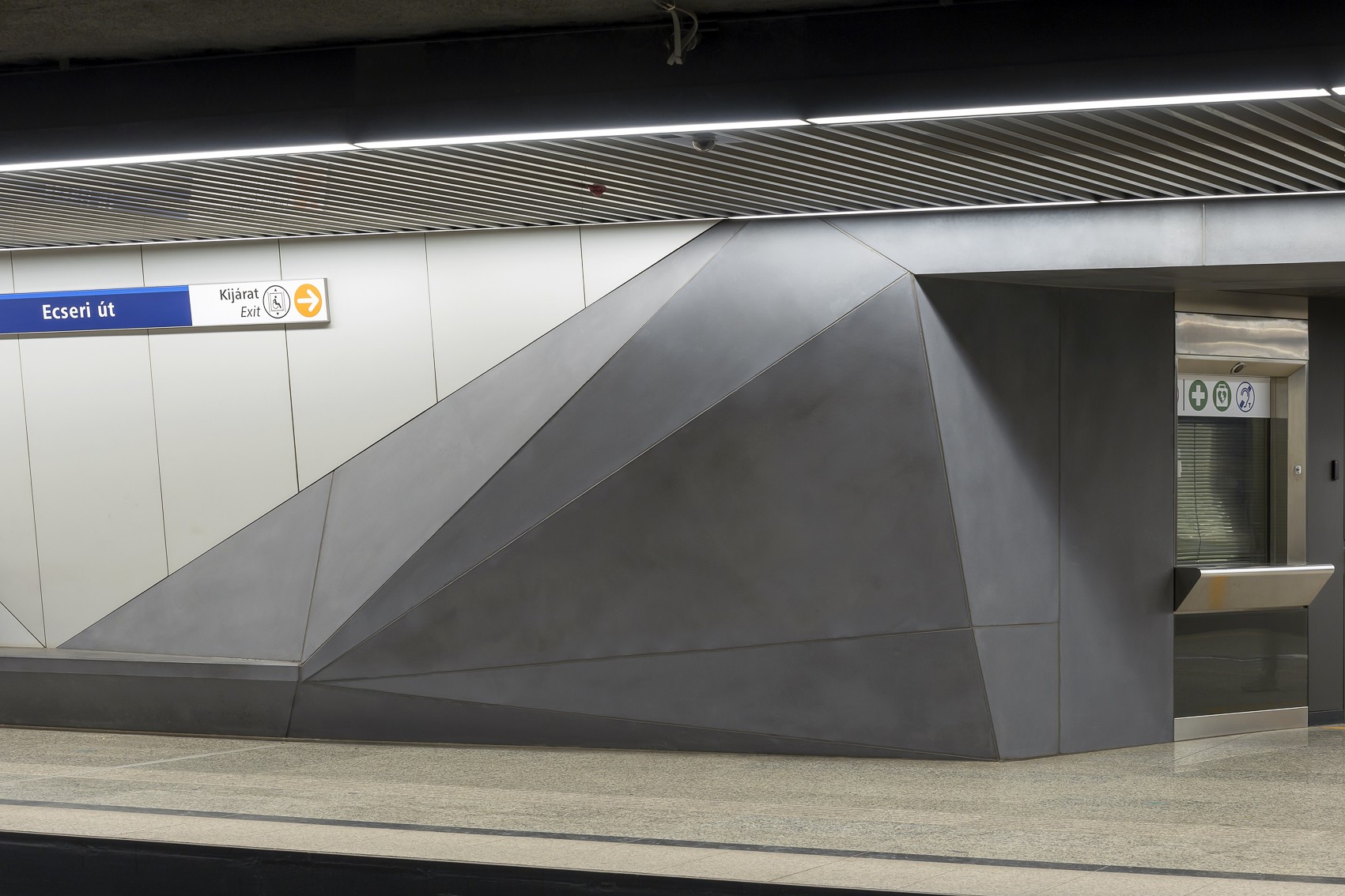 Letisztult betonfelületek a budapesti metró Ecseri úti megállójában.