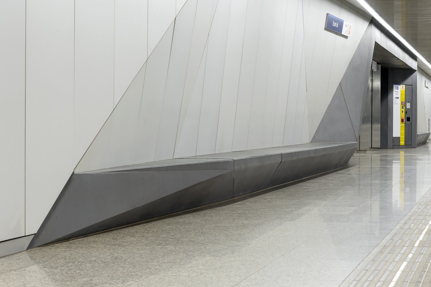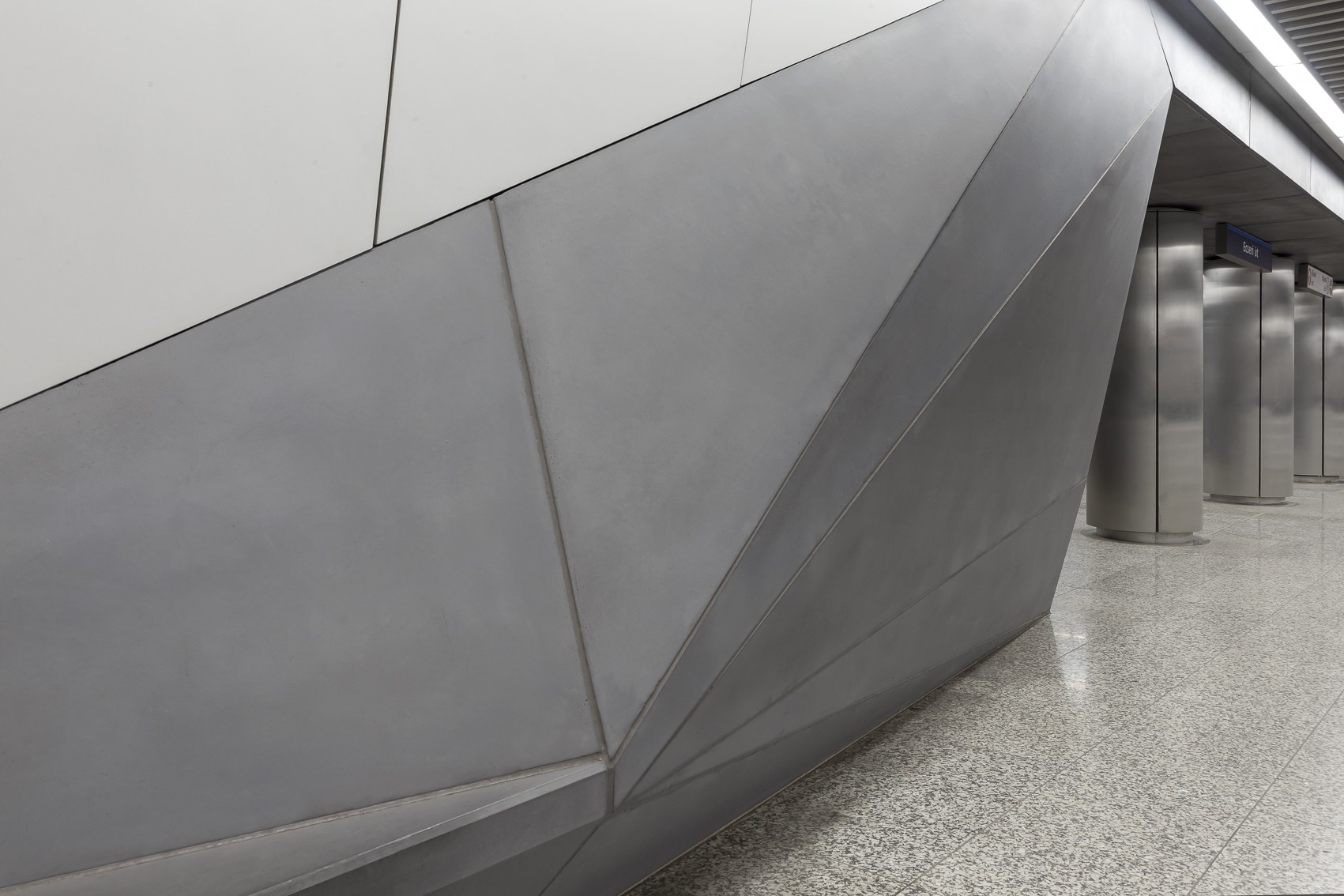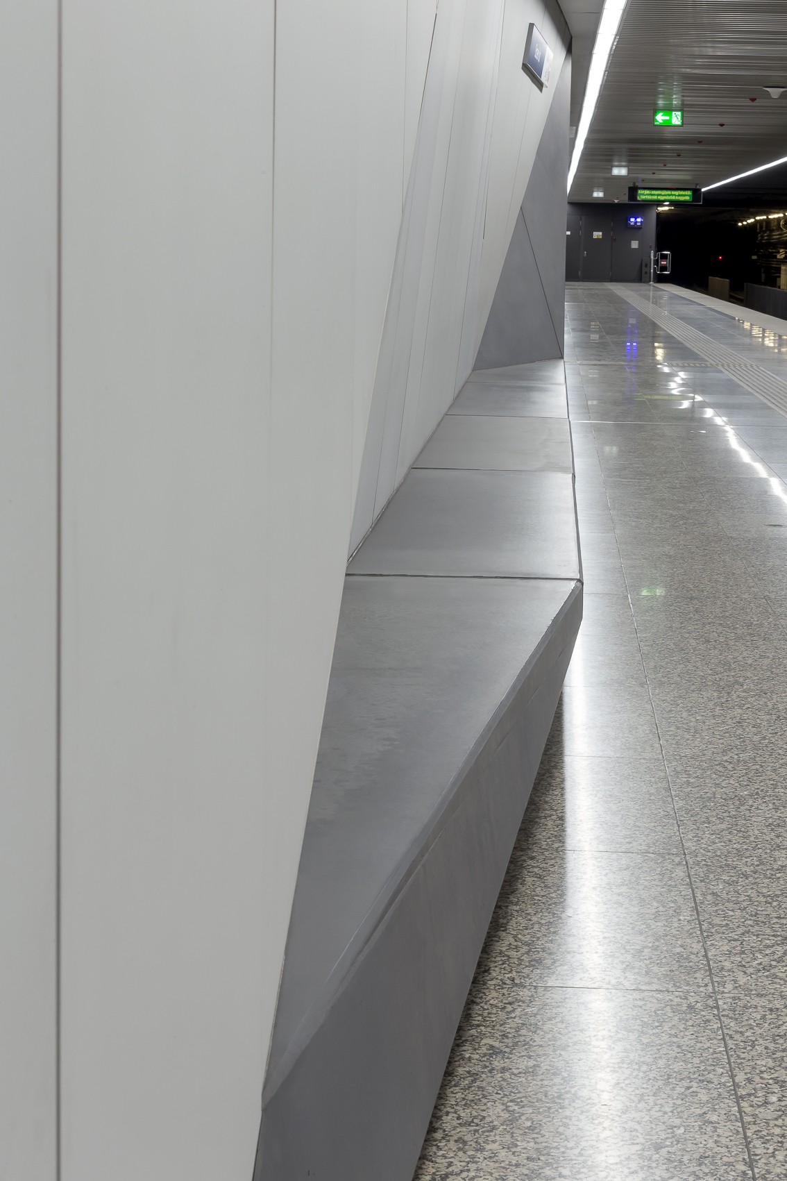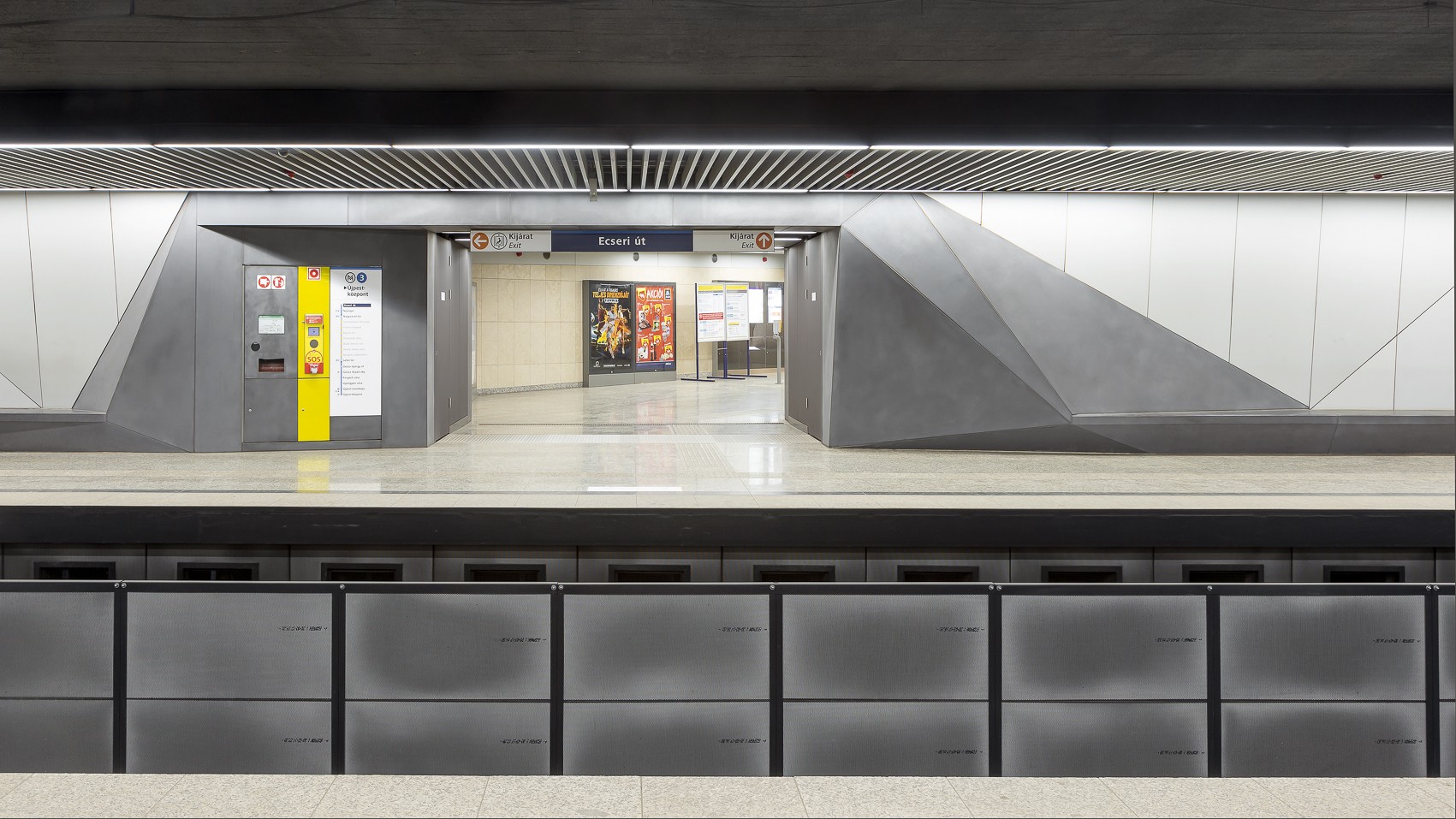 Letisztult betonfelületek a budapesti metró Ecseri úti megállójában.