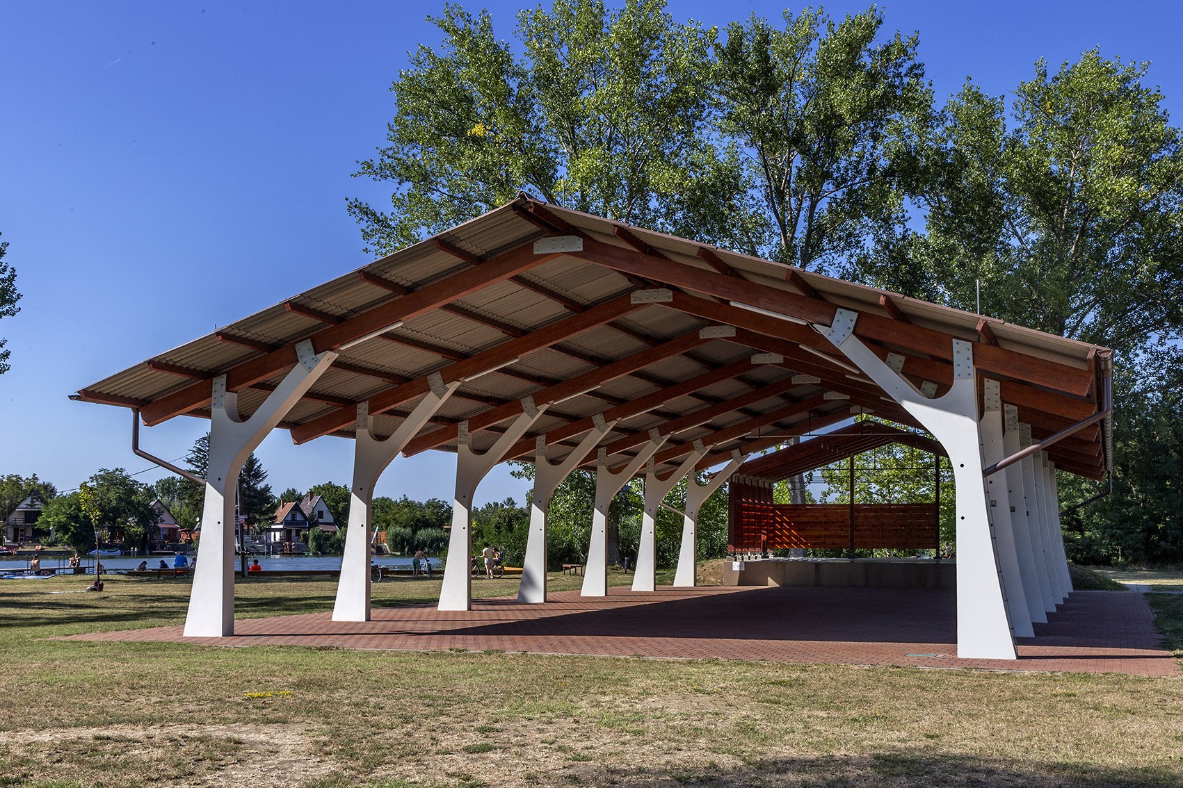 A festői Békésszentandráson található szabadtéri szinpad fedett csarnokának a tartópillérei szintén Stylecrete finombetonból készültek.